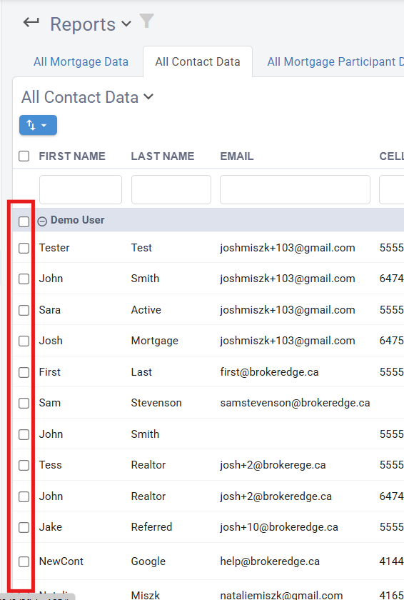 If you want to export any data, whether that is from Contacts, Mortgages or Reports select the up/down arrow and it will allow you to export as a CSV.