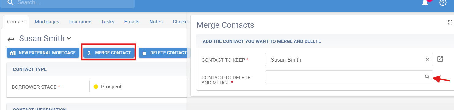 - Click the "Merge Contact" button.