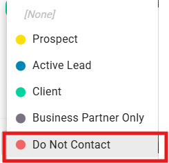 If you no longer want a contact to receive any emails from you, you can set their borrower stage in the 'Do No Contact'