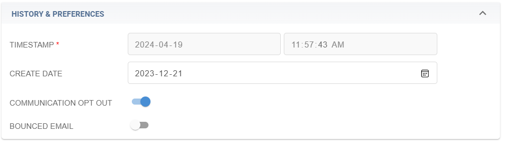 You can also set this manually in any contact: To do this, go into a contact profile and scroll down to the ' History and Preferences' section and expand it and will see the Communication Opt Out' toggle there.