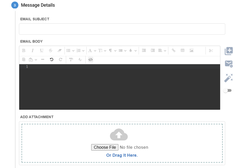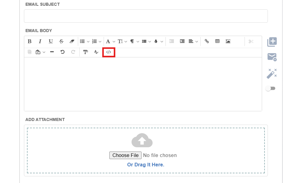 You can select this tool from the top of the email toolbar to make your email into HTML </>