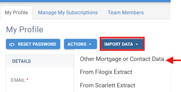 My Profile>Import Data>Other Mortgage or Contact Data