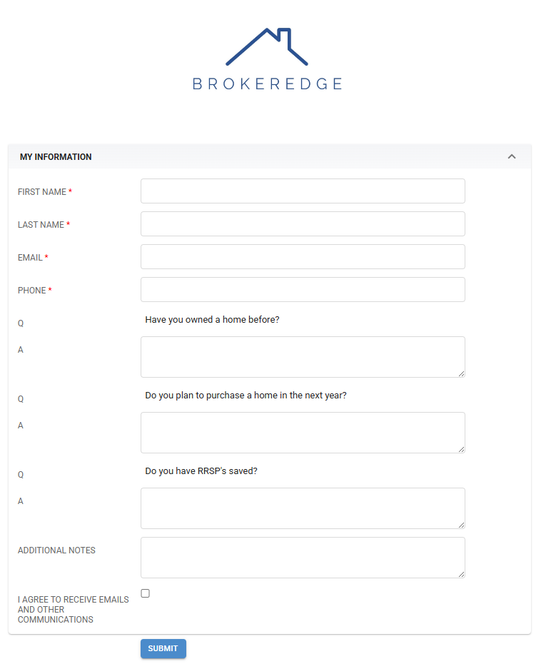 You can create your own Lead capture form in Brokeredge. You can locate and create these forms with the steps below.