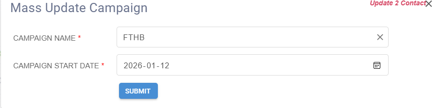 Select date you want the Campaign to begin and click 'submit'. This will put all those contacts selected into that chosen campaign.
