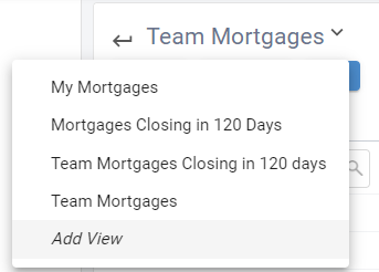 Note: The view created will be created with the same logic as the view you're currently on. For that reason, it's best to create the view from the All Mortgages tab since it has no logic applied.