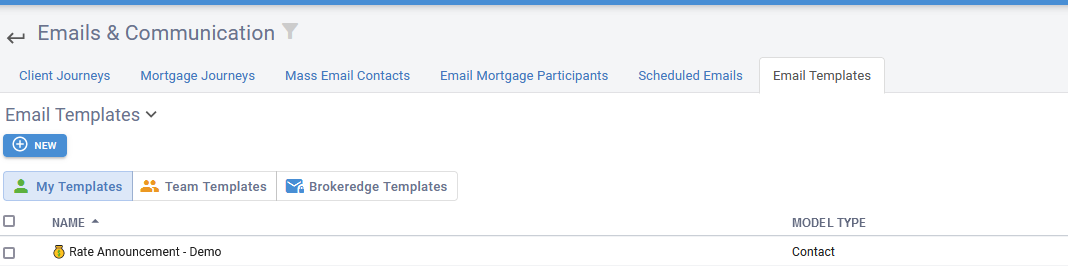 1. To create your first email template, go to the Emails & Communication section and click on the Email Templates tab