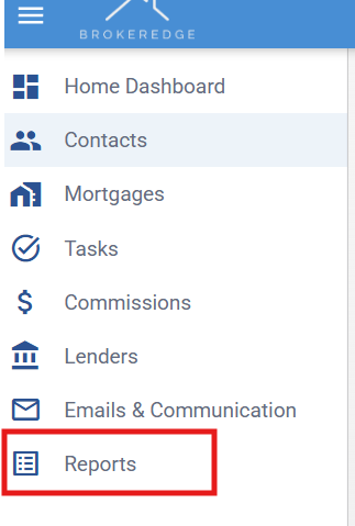 Reports Tab: Building Your Own Reports can be done in the Reports tab on the left side of the Brokeredge panel