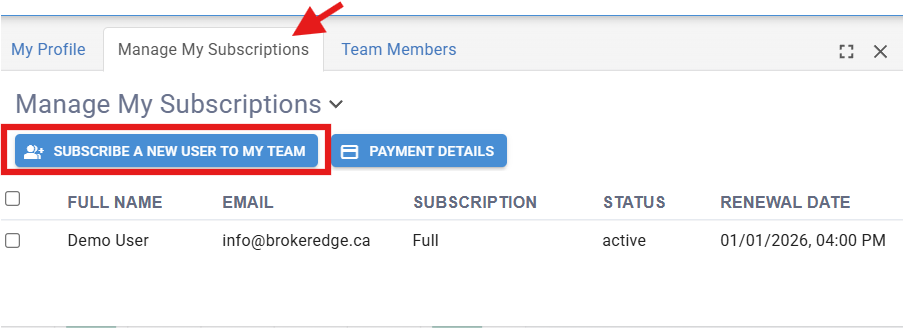 - If you've chosen to pay for your team and want to add them, you can subscribe a new user yourself by going to My Profile >Manage my Subscriptions> Subscribe a New User to My Team