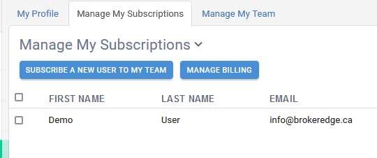 If you want to add a new team member and pay for those users on your team, Brokeredge makes it simple to manage subscriptions directly from your profile.