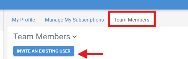 - Once you have added the team member subscription you then have the ability to add them as a team and setting their team role in relationship to you. This will be sent as an email invite for them to accept. Go to the Team Members Tab>Invite an Existing User